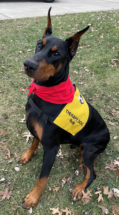 Rudy loves his therapy work. He goes from person to person in the room just to make sure that he’s received his “pets” from everybody and he always knows when there’s somebody new in the room. |