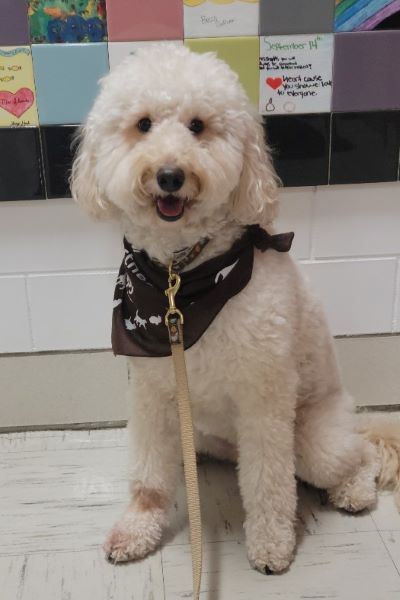 Mini Goldendoodle (with some standard poodle in the distant background) |