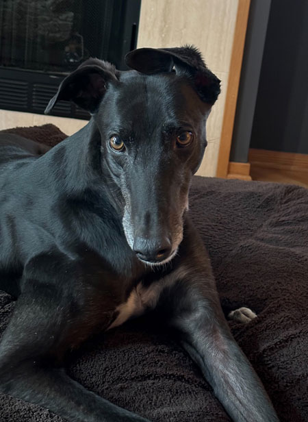 Huns was a racing greyhound. He raced in Arkansas and West Virginia. He moved to Florida right about the time Covid hit. The racetracks closed. Huns retired and was sent to Greyhounds Only to prepare for adoption. I adopted him in May of 2020. His racing name was FGF Roll Me Away. |