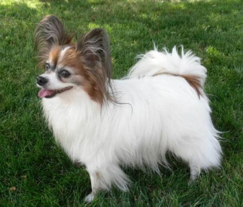 Abbie is a happy little dog who loves to be carried and petted on her therapy dog visits. She was born with a genetic defect of a severe luxating patella. She learned to live with her disability, but in 2010 she finally had surgery to correct her knee cap. She is back enjoying her visits at Hines.