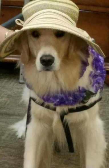Anela has been doing therapy work for a year, as soon as I get out the backpack that I take when she is going to work she is at the door, she loves being with people. She has worked at many places. Her job is to be petted and loved on and she thinks that's great. |